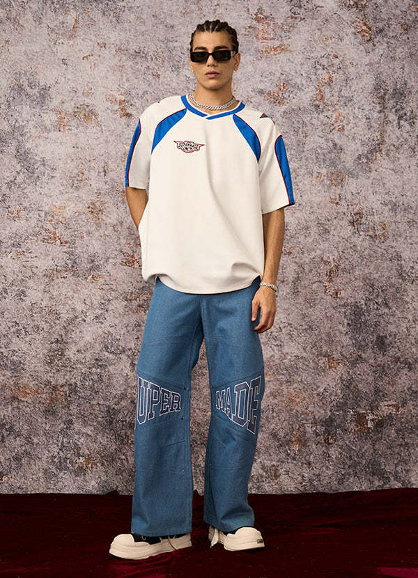 • Material: Denim• Detail Features: Front Logo Print. Ribbed Cuffs and Hem. Relaxed Fit• Design Elements: Distressed Look. Sports LogoWhy You'll Love ..